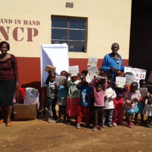 Auch unseren Plan, dass jedes Kind ein eigenes Buch bekommen muss, konnten wir an den Pilot-NCPs umsetzen. Die Bilderbuchanthologien, die ich vor zwei Jahren zusammengestellt hatte und die immer noch die einzigen Bilderbücher in der Landessprache siSwati sind, wurden an den Pilot NCPs an die Kinder verteilt, verbunden mit einer Einführung der Caregivers in die Arbeit mit Bilderbüchern. Für diese Frauen, die als Kinder selbst keine Kinderbücher gekannt haben, eine ganz neue Erfahrung!